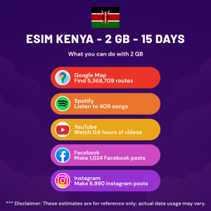 Hello, Globetrotter! 🚀 Gearing up for a journey to the world’s hidden gem, Kenya? Let our 2 GB – 15 Days eSIM be your reliable digital ally, ensuring you remain connected at every step!
