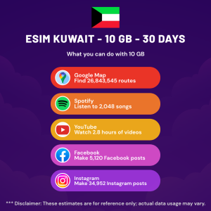 Hello, Globetrotter! 🚀 Gearing up for a journey to the world’s hidden gem, Kuwait? Let our 10 GB – 30 Days eSIM be your reliable digital ally, ensuring you remain connected at every step!
