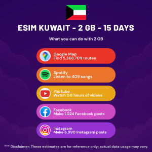 Hello, Globetrotter! 🚀 Gearing up for a journey to the world’s hidden gem, Kuwait? Let our 2 GB – 15 Days eSIM be your reliable digital ally, ensuring you remain connected at every step!