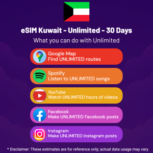 Hello, Globetrotter! 🚀 Gearing up for a journey to the world’s hidden gem, Kuwait? Let our Unlimited – 30 Days eSIM be your reliable digital ally, ensuring you remain connected at every step!