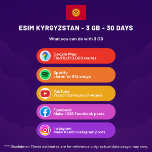 Hello, Globetrotter! 🚀 Gearing up for a journey to the world’s hidden gem, Kyrgyzstan? Let our 3 GB – 30 Days eSIM be your reliable digital ally, ensuring you remain connected at every step!