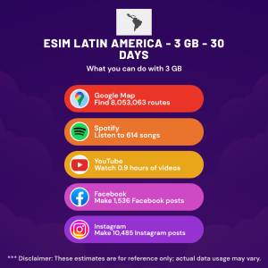 Hello, Globetrotter! 🚀 Gearing up for a journey to the world’s hidden gem, Latin America? Let our 3 GB – 30 Days eSIM be your reliable digital ally, ensuring you remain connected at every step!