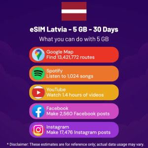 Hello, Globetrotter! 🚀 Gearing up for a journey to the world’s hidden gem, Latvia? Let our 5 GB – 30 Days eSIM be your reliable digital ally, ensuring you remain connected at every step!