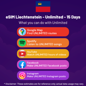 Hello, Globetrotter! 🚀 Gearing up for a journey to the world’s hidden gem, Liechtenstein? Let our Unlimited – 15 Days eSIM be your reliable digital ally, ensuring you remain connected at every step!