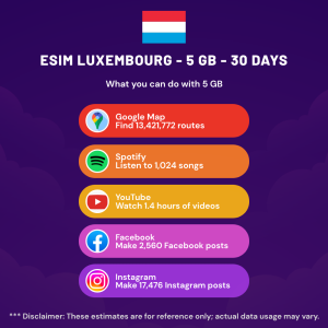 Hello, Globetrotter! 🚀 Gearing up for a journey to the world’s hidden gem, Luxembourg? Let our 5 GB – 30 Days eSIM be your reliable digital ally, ensuring you remain connected at every step!