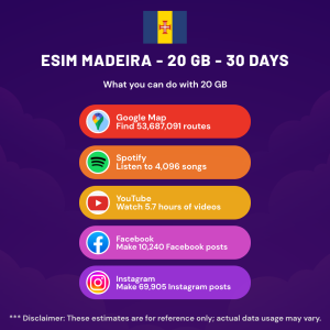 Hello, Globetrotter! 🚀 Gearing up for a journey to the world’s hidden gem, Madeira? Let our 20 GB – 30 days eSIM be your reliable digital ally, ensuring you remain connected at every step!