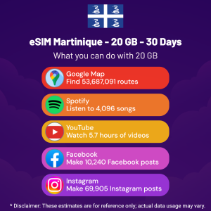 Hello, Globetrotter! 🚀 Gearing up for a journey to the world’s hidden gem, Martinique? Let our 20 GB – 30 Days eSIM be your reliable digital ally, ensuring you remain connected at every step!