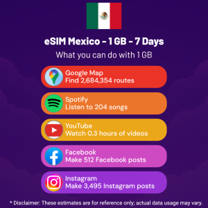 Hello, Globetrotter! 🚀 Gearing up for a journey to the world’s hidden gem, Mexico? Let our 1 GB – 7 Days eSIM be your reliable digital ally, ensuring you remain connected at every step!