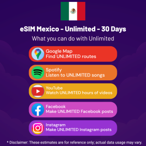 Hello, Globetrotter! 🚀 Gearing up for a journey to the world’s hidden gem, Mexico? Let our Unlimited – 30 days eSIM be your reliable digital ally, ensuring you remain connected at every step!