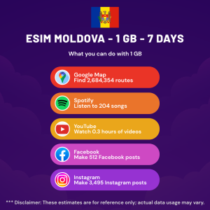 Hello, Globetrotter! 🚀 Gearing up for a journey to the world’s hidden gem, Moldova? Let our 1 GB – 7 Days eSIM be your reliable digital ally, ensuring you remain connected at every step!