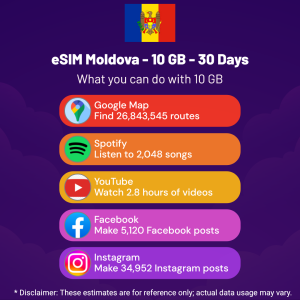 Hello, Globetrotter! 🚀 Gearing up for a journey to the world’s hidden gem, Moldova? Let our 10 GB – 30 Days eSIM be your reliable digital ally, ensuring you remain connected at every step!