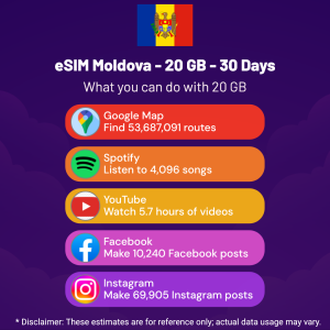 eSIM Moldova – 20 GB – 30 Days