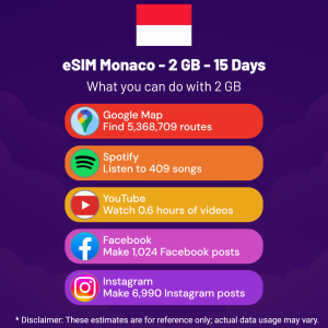 Hello, Globetrotter! 🚀 Gearing up for a journey to the world’s hidden gem, Monaco? Let our 2 GB – 15 Days eSIM be your reliable digital ally, ensuring you remain connected at every step!