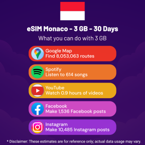 Hello, Globetrotter! 🚀 Gearing up for a journey to the world’s hidden gem, Monaco? Let our 3 GB – 30 Days eSIM be your reliable digital ally, ensuring you remain connected at every step!
