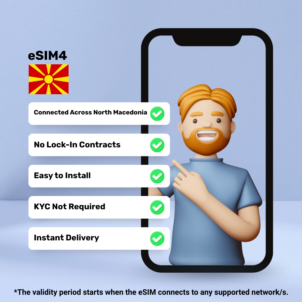 ✔️ Networks: Our North Macedonia eSIM syncs with local network providers, ensuring uninterrupted coverage.