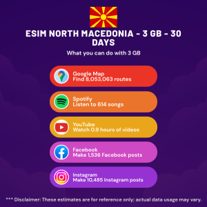 Hello, Globetrotter! 🚀 Gearing up for a journey to the world’s hidden gem, North Macedonia? Let our 3 GB – 30 Days eSIM be your reliable digital ally, ensuring you remain connected at every step!