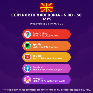 Hello, Globetrotter! 🚀 Gearing up for a journey to the world’s hidden gem, North Macedonia? Let our 5 GB – 30 Days eSIM be your reliable digital ally, ensuring you remain connected at every step!