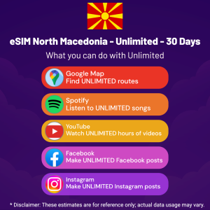 Hello, Globetrotter! 🚀 Gearing up for a journey to the world’s hidden gem, North Macedonia? Let our Unlimited – 30 Days eSIM be your reliable digital ally, ensuring you remain connected at every step!