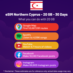 Hello, Globetrotter! 🚀 Gearing up for a journey to the world’s hidden gem, Northern Cyprus? Let our 20 GB – 30 Days eSIM be your reliable digital ally, ensuring you remain connected at every step!