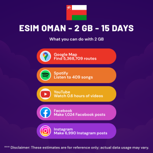 Hello, Globetrotter! 🚀 Gearing up for a journey to the world’s hidden gem, Oman? Let our 2 GB – 15 Days eSIM be your reliable digital ally, ensuring you remain connected at every step!