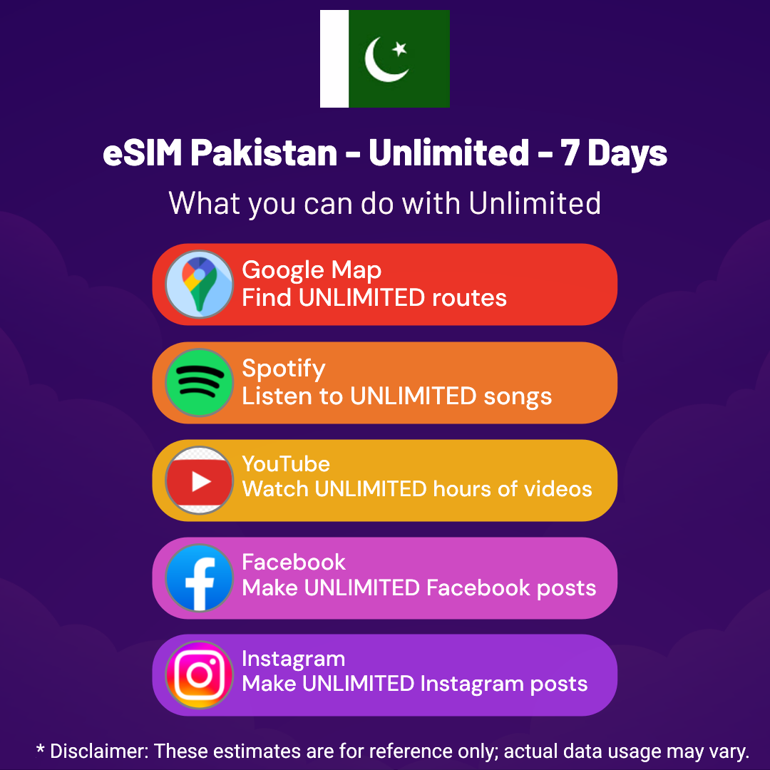 Hello, Globetrotter! 🚀 Gearing up for a journey to the world’s hidden gem, Pakistan? Let our Unlimited – 7 Days eSIM be your reliable digital ally, ensuring you remain connected at every step!
