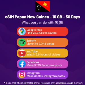 Hello, Globetrotter! 🚀 Gearing up for a journey to the world’s hidden gem, Papua New Guinea? Let our 10 GB – 30 Days eSIM be your reliable digital ally, ensuring you remain connected at every step!