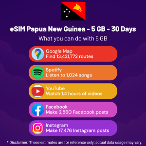 Hello, Globetrotter! 🚀 Gearing up for a journey to the world’s hidden gem, Papua New Guinea? Let our 5 GB – 30 Days eSIM be your reliable digital ally, ensuring you remain connected at every step!