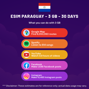 Hello, Globetrotter! 🚀 Gearing up for a journey to the world’s hidden gem, Paraguay? Let our 3 GB – 30 Days eSIM be your reliable digital ally, ensuring you remain connected at every step!