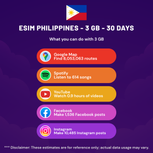 Hello, Globetrotter! 🚀 Gearing up for a journey to the world’s hidden gem, Philippines? Let our 3 GB – 30 Days eSIM be your reliable digital ally, ensuring you remain connected at every step!