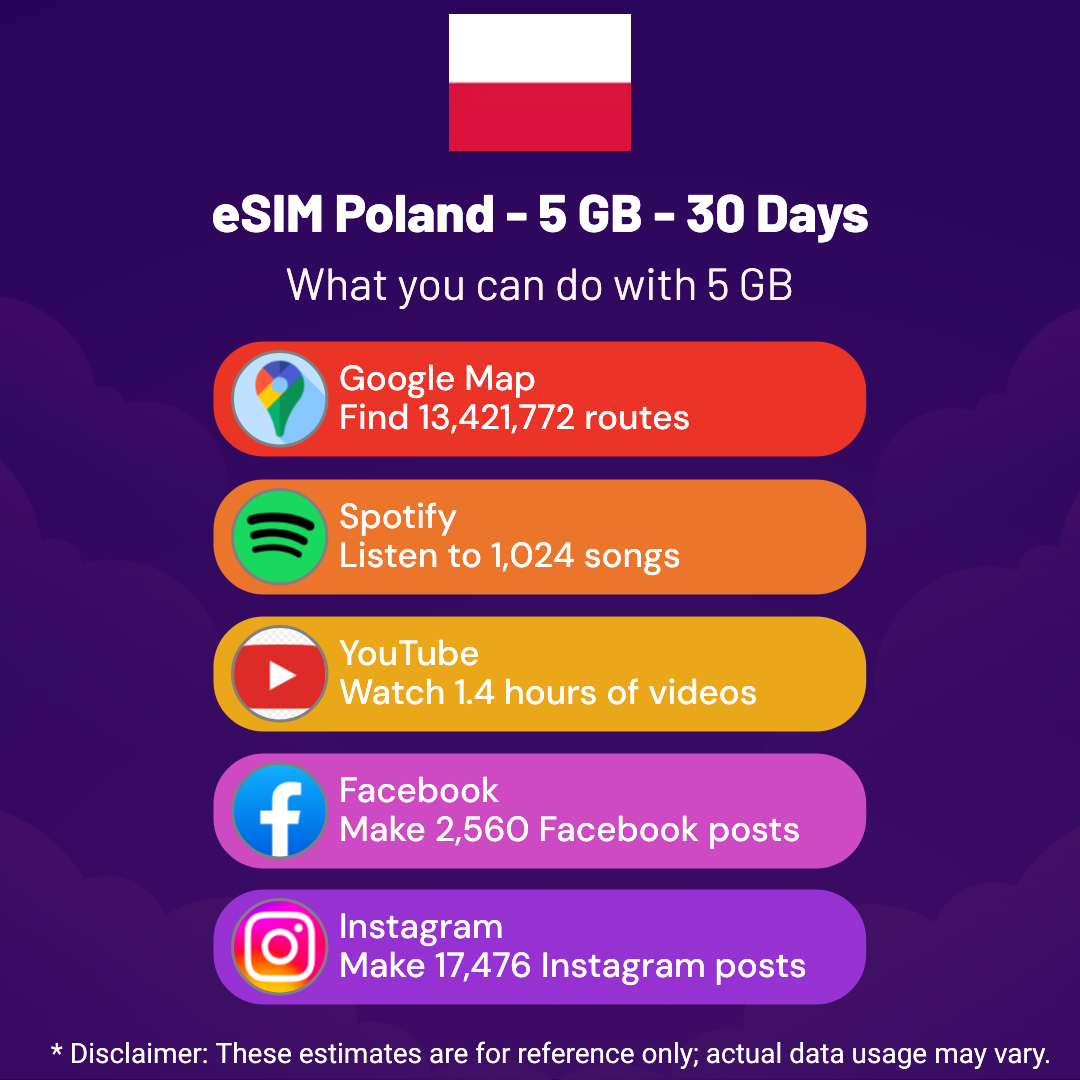 Hello, Globetrotter! 🚀 Gearing up for a journey to the world’s hidden gem, Poland? Let our 5 GB – 30 Days eSIM be your reliable digital ally, ensuring you remain connected at every step!