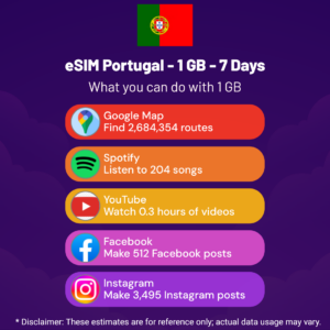 Hello, Globetrotter! 🚀 Gearing up for a journey to the world’s hidden gem, Portugal? Let our 1 GB – 7 Days eSIM be your reliable digital ally, ensuring you remain connected at every step!