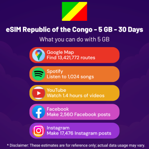Hello, Globetrotter! 🚀 Gearing up for a journey to the world’s hidden gem, Republic of the Congo? Let our 5 GB – 30 Days eSIM be your reliable digital ally, ensuring you remain connected at every step!