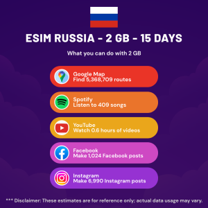 Hello, Globetrotter! 🚀 Gearing up for a journey to the world’s hidden gem, Russia? Let our 2 GB – 15 Days eSIM be your reliable digital ally, ensuring you remain connected at every step!