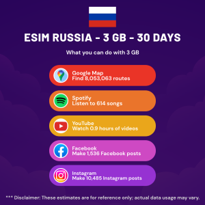 Hello, Globetrotter! 🚀 Gearing up for a journey to the world’s hidden gem, Russia? Let our 3 GB – 30 Days eSIM be your reliable digital ally, ensuring you remain connected at every step!