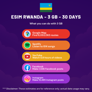 Hello, Globetrotter! 🚀 Gearing up for a journey to the world’s hidden gem, Rwanda? Let our 3 GB – 30 Days eSIM be your reliable digital ally, ensuring you remain connected at every step!
