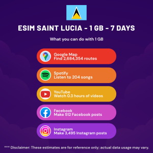 Hello, Globetrotter! 🚀 Gearing up for a journey to the world’s hidden gem, Saint Lucia? Let our 1 GB – 7 Days eSIM be your reliable digital ally, ensuring you remain connected at every step!