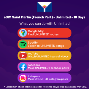 Hello, Globetrotter! 🚀 Gearing up for a journey to the world’s hidden gem, Saint Martin (French Part)? Let our Unlimited – 10 Days eSIM be your reliable digital ally, ensuring you remain connected at every step!