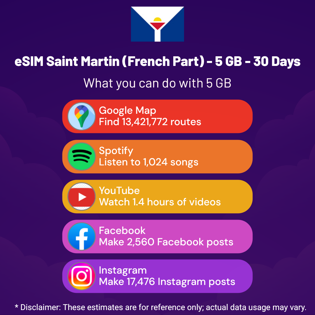 eSIM Saint Martin (French Part) – 5 GB – 30 Days