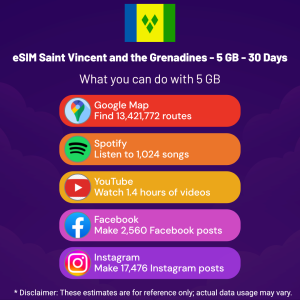 Hello, Globetrotter! 🚀 Gearing up for a journey to the world’s hidden gem, Saint Vincent and the Grenadines? Let our 5 GB – 30 Days eSIM be your reliable digital ally, ensuring you remain connected at every step!