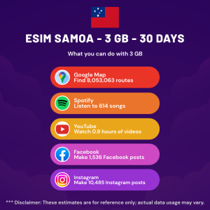 Hello, Globetrotter! 🚀 Gearing up for a journey to the world’s hidden gem, Samoa? Let our 3 GB – 30 Days eSIM be your reliable digital ally, ensuring you remain connected at every step!