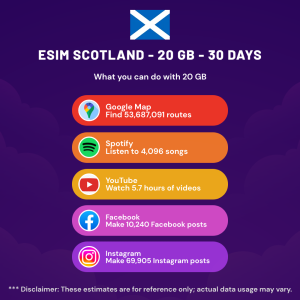 Hello, Globetrotter! 🚀 Gearing up for a journey to the world’s hidden gem, Scotland? Let our 20 GB – 30 Days eSIM be your reliable digital ally, ensuring you remain connected at every step!