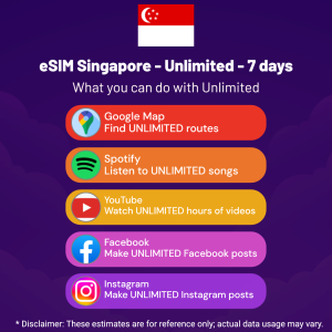 Hello, Globetrotter! 🚀 Gearing up for a journey to the world’s hidden gem, Singapore? Let our Unlimited – 7 days eSIM be your reliable digital ally, ensuring you remain connected at every step!