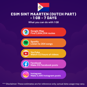 Hello, Globetrotter! 🚀 Gearing up for a journey to the world’s hidden gem, Sint Maarten (Dutch Part)? Let our 1 GB – 7 Days eSIM be your reliable digital ally, ensuring you remain connected at every step!
