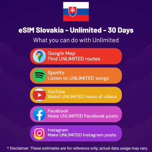 Hello, Globetrotter! 🚀 Gearing up for a journey to the world’s hidden gem, Slovakia? Let our Unlimited – 30 Days eSIM be your reliable digital ally, ensuring you remain connected at every step!