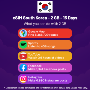 Hello, Globetrotter! 🚀 Gearing up for a journey to the world’s hidden gem, South Korea? Let our 2 GB – 15 Days eSIM be your reliable digital ally, ensuring you remain connected at every step!