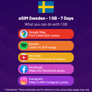 Hello, Globetrotter! 🚀 Gearing up for a journey to the world’s hidden gem, Sweden? Let our 1 GB – 7 Days eSIM be your reliable digital ally, ensuring you remain connected at every step!
