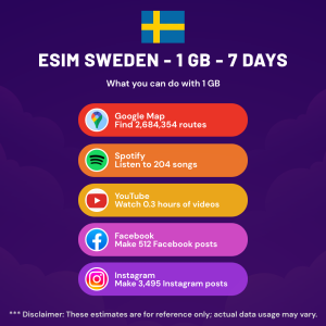 Hello, Globetrotter! 🚀 Gearing up for a journey to the world’s hidden gem, Sweden? Let our 1 GB – 7 Days eSIM be your reliable digital ally, ensuring you remain connected at every step!