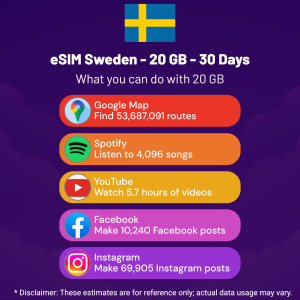Hello, Globetrotter! 🚀 Gearing up for a journey to the world’s hidden gem, Sweden? Let our 20 GB – 30 Days eSIM be your reliable digital ally, ensuring you remain connected at every step!