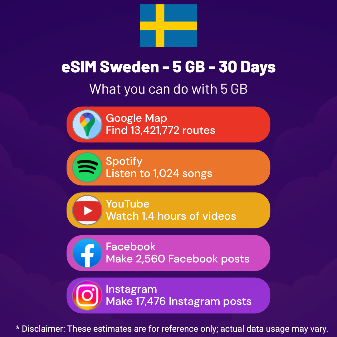 Hello, Globetrotter! 🚀 Gearing up for a journey to the world’s hidden gem, Sweden? Let our 5 GB – 30 Days eSIM be your reliable digital ally, ensuring you remain connected at every step!