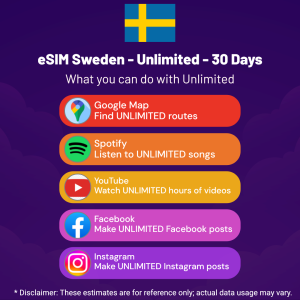 Hello, Globetrotter! 🚀 Gearing up for a journey to the world’s hidden gem, Sweden? Let our Unlimited – 30 Days eSIM be your reliable digital ally, ensuring you remain connected at every step!